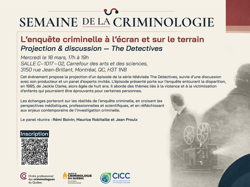 We are proud to participate in the first edition of the Semaine québécoise de la criminologie, which will take place from March 15 to 21, 2026.