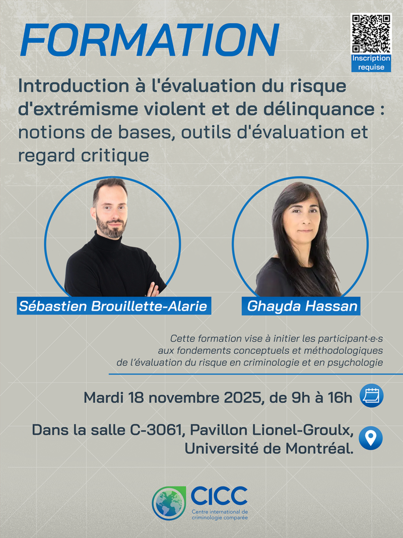 This training will be led by professors Sébastien Brouillette-Alarie and Ghayda Hassan and will take place on Tuesday, November 18, 2025, from 9:00 a.m. to 4:00 p.m. in Room C-3061, Pavillon Lionel-Groulx, Université de Montréal.
