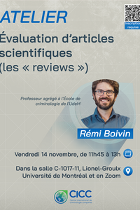 Évaluation d’articles scientifiques (les « reviews »)AtelierAtelier de Rémi Boivin. Inscription pour les places en présentiel. (Après votre inscription, un courriel de confirmation vous permettra d’ajouter cet événement à votre calendrier.) |